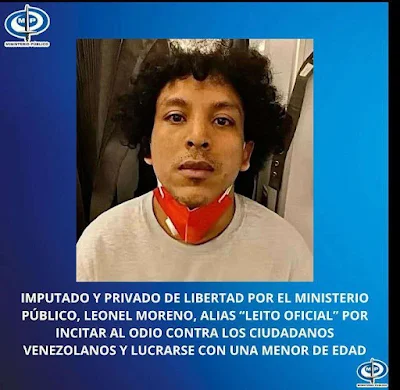 El Fiscal General detalló que "Leíto Oficial" utilizaba sus plataformas digitales para difundir contenido delictivo, incitando al odio contra ciudadanos venezolanos. Además, se le acusa de explotar a su hija menor de edad para obtener beneficios económicos de manera ilícita.